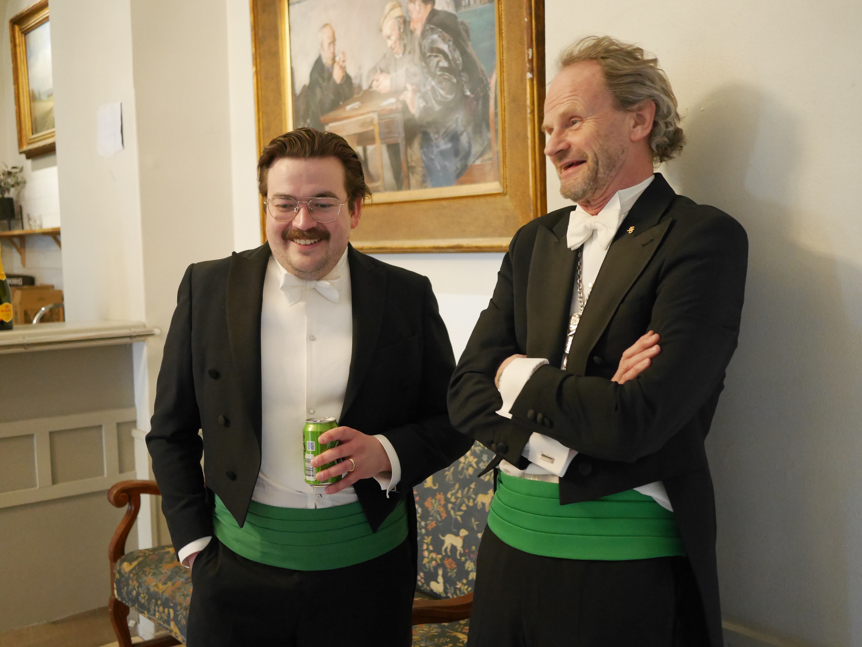 Bild: Uarda-Akademiens första præses Sten Broman tillsammans med emeriterade ledamoten Nils Dahlgren i rollen som prinsessan Uarda.